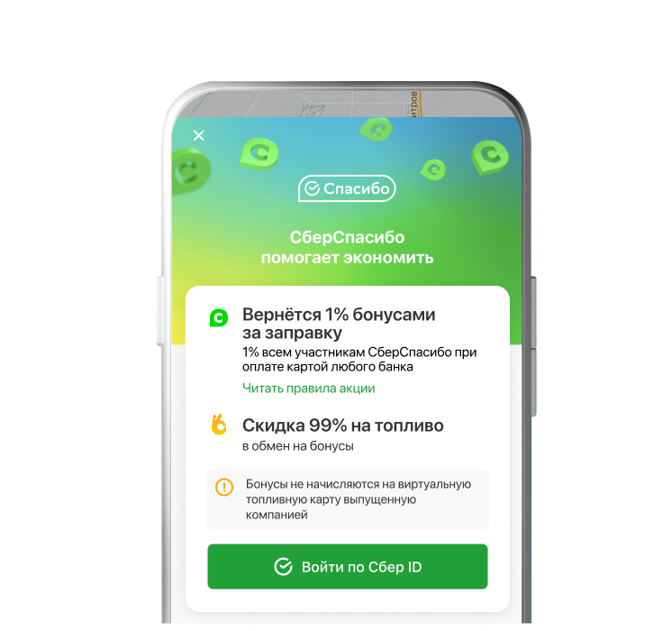 Получайте и списывайте бонусы «Спасибо» при оплате топлива любой картой после входа по CБЕР ID